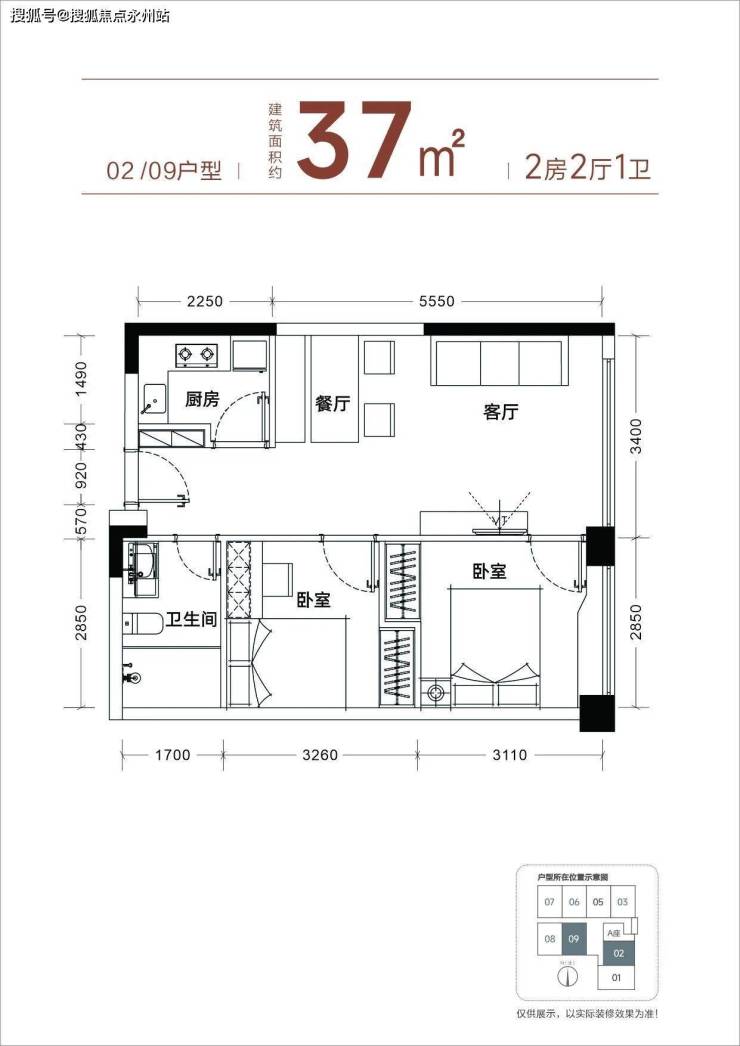 【产品面积】约37㎡小两房(实际套内使用面积接近54㎡)