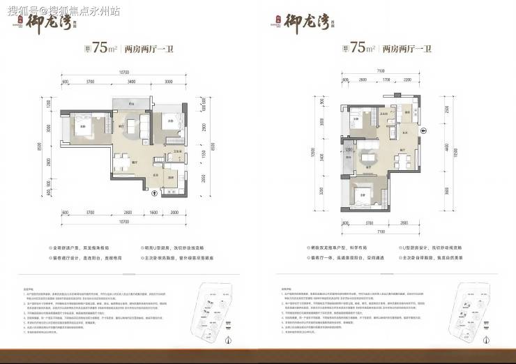 75㎡两房一卫:分布1栋3/4单元01/03/06/08户型