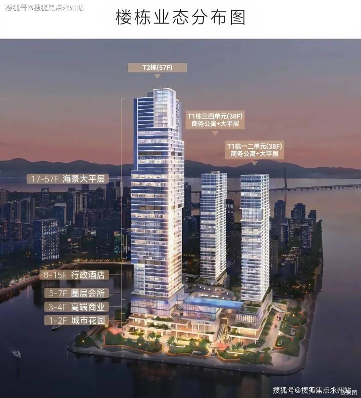 高区楼王:33-38 层为三梯一户设计,如 400㎡四房三厅五卫、700㎡六房三厅七卫,仅6席,南向超大三厅一体,尊享极致海景。