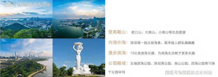 半岛生态格局:接驳 15 公里滨海长廊,步行可达深圳湾公园,小南山公园提供山地休闲体验,形成"山海城湾"四维景观体系。