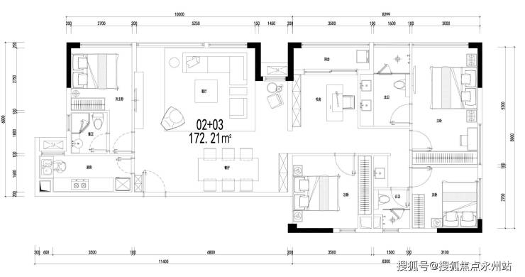 C02+03户型:约172㎡4+1房,阔尺空间藏风华,高区无遮视野揽星河