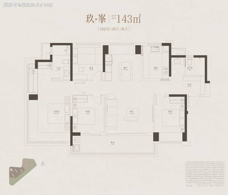 104-143㎡四房:均价 5.5-5.8 万 /㎡,总价 580 万 - 830 万,适合首改客群。