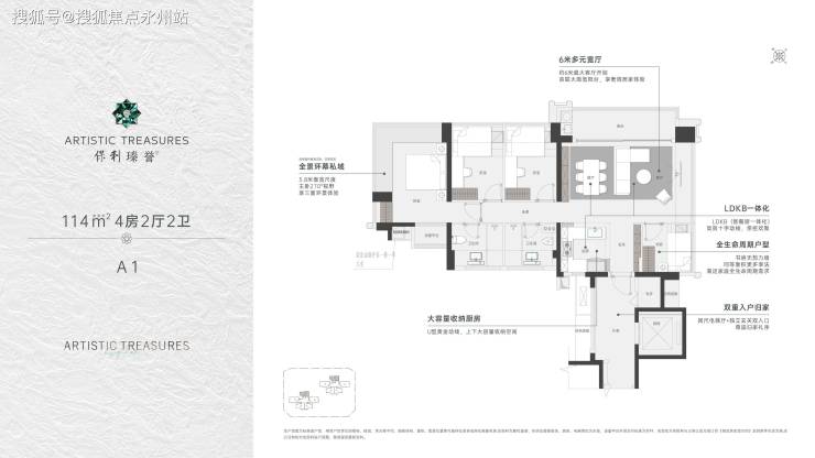 推出114-122-138-143㎡的4房户型,其中每户都有独立私家电梯厅赠送率都去到了100%左右。