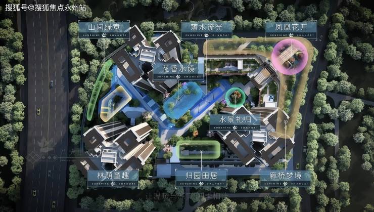 中央景观区:打造约500㎡国际标准泳池、环形夜光跑道、亲子菜园、童趣沙滩等全龄段设施,园林绿化率达40%,配备香氛系统、背景音乐系统,营造沉浸式自然体验。