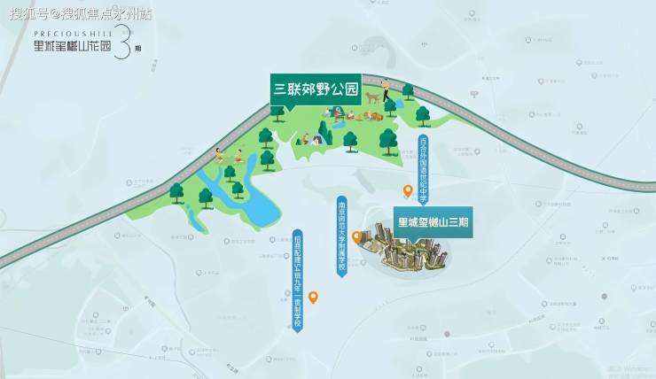 休闲娱乐方面,三联郊野公园,项目背靠三联郊野公园,这是一个由华侨城打造的大型生态公园,总占地面积达159万㎡。目前一期工程已经完成并对外开放,园内设有环湖自行车道、市民休闲登山道等设施,是您休闲健身的好去处。