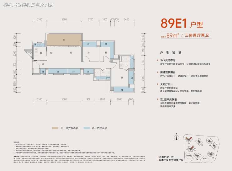 89㎡E横厅(5.6米巨幕阳台)总价288-305万 | 奢阔客厅,纵览四季美景。