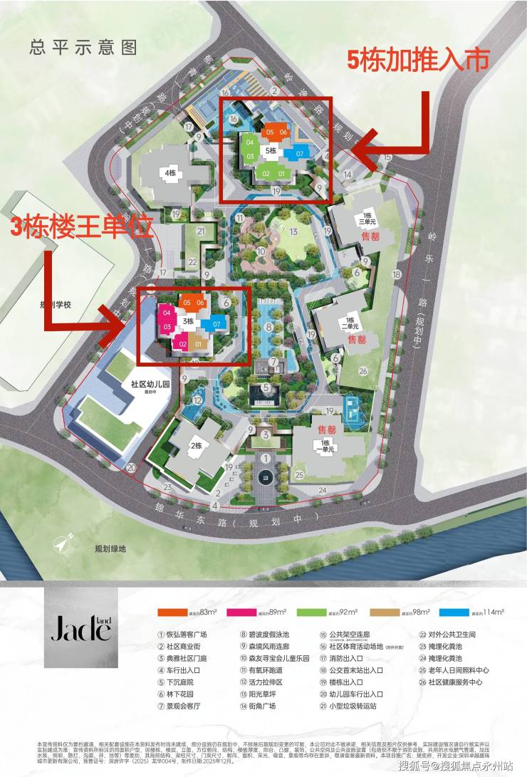 房源特色:5栋房源中,83㎡户型阳台西北朝向,92㎡户型东南朝向;3栋楼王单位中,114㎡户型主阳台东南向,采光通风条件优越。