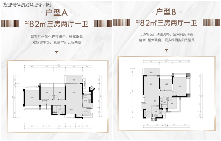 建面约82m²的户型:该户型最大的亮点在于充分考虑了刚需家庭需求,在空间设计上做了很多巧思,增加了空间的实用性。
