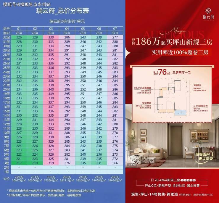 天健瑞云府的核心价值在于,买坪山实验学区+万象商圈+国企精装三房。对于能接受5年兑现周期的购房者,这是深圳东部价值洼地的「原始股」。建议重点关注开盘首推的2栋1单元(3梯7户,210套房源),特别是 76㎡和 89㎡户型,当前市场环境下,国企盘的安全性 + 新规户型的稀缺性,或许正是深圳刚需「逆风抄底」的最佳窗口期,(深圳坪山天健瑞云府售楼处电话:400-992-0669)