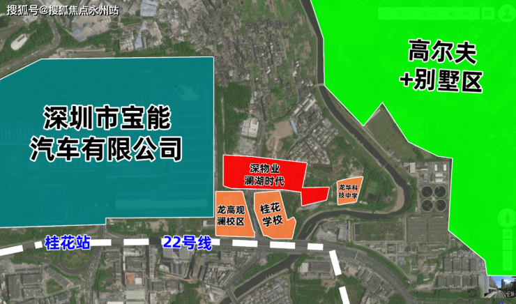 「澜湖时代景愉府」项目前身是观澜蚌岭旧改,位于龙华区观澜街道桂花路与观光路交汇处北侧约200米,南侧紧挨着桂花小学,东北侧是火湖新村,东侧是观澜湖,周边整体以工业园区为主,最近的地铁是正在动工的22号线 “桂花站”
