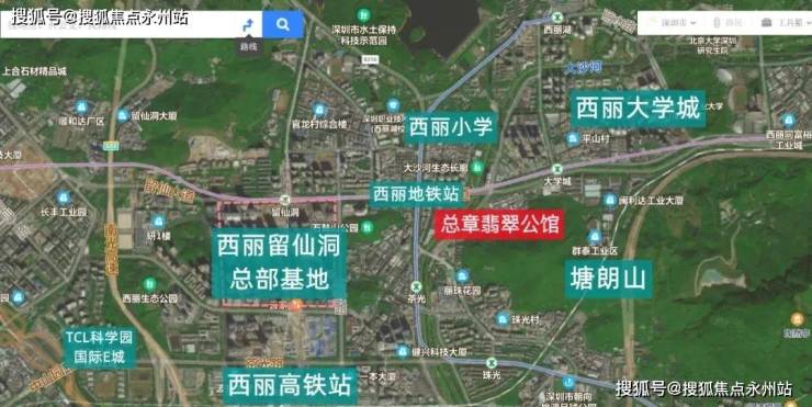 项目西侧为西丽留仙洞总部基地,东北侧为大学城,东侧为塘朗山,西南侧是西丽高铁站。