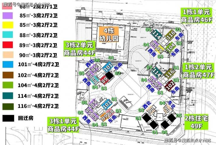 珑门壹品:推售面积有68㎡的2房2厅1卫,85㎡的3房2厅2卫,101-116㎡的4房2厅2卫户型