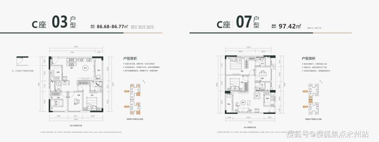 C07户型:约97㎡改善级舒适大三房户型,总价194万起,改善级户型,空间尺度更充裕