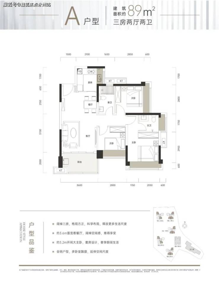 89㎡的3房2厅2卫:折后总价约190万/套起,折后单价约2.15万/㎡。