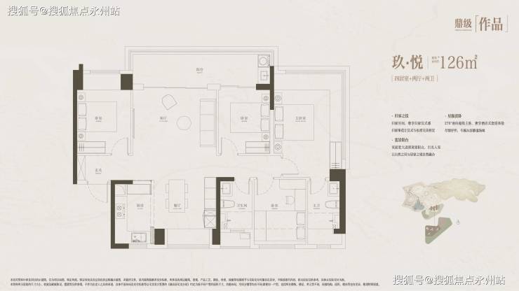 126㎡四房:折后单价4.74-5.5万/㎡,总价580-693万,为项目最低门槛户型,主打“大运二环价买一环核心”,性价比突出。