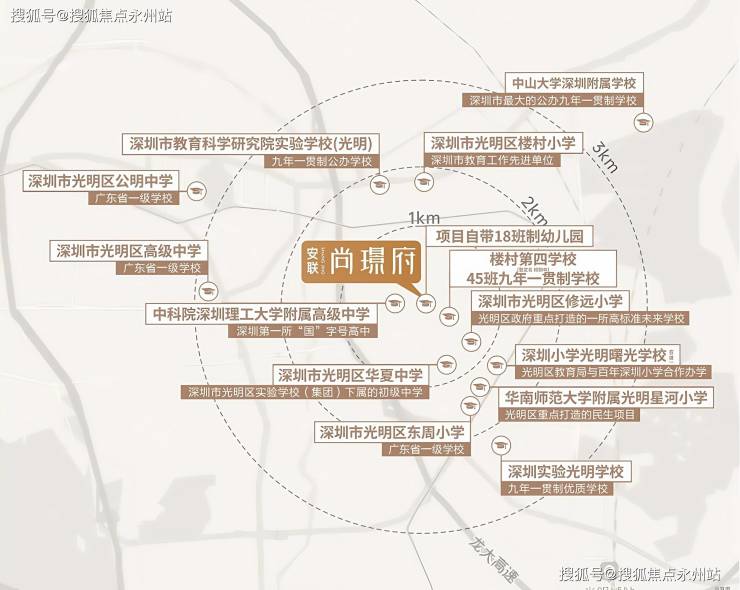 医疗资源快速升级:3公里范围内拥有3家三甲医院:中国科学院大学深圳医院(东院区)、中山大学附属第七医院(华南单体最大医院),以及 2024 年 6 月试运营的深圳市中医院光明院区(一期 2000床,2025年全面开放),形成中西医结合的高端医疗体系。
