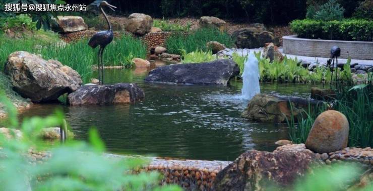 项目内部打造了一条沿着台地蜿蜒的溪流,该水系为市面罕见的活水溪流,贯穿整个社区园林,依据溪岸的曲直不同和地形变化,打造叠水、溪流、瀑布、水潭等多样特色水景,溪岸植物种类繁多,与水流互为风景,沿岸专门设置不同的亲水平台,营造自然灵动的栖心之境。