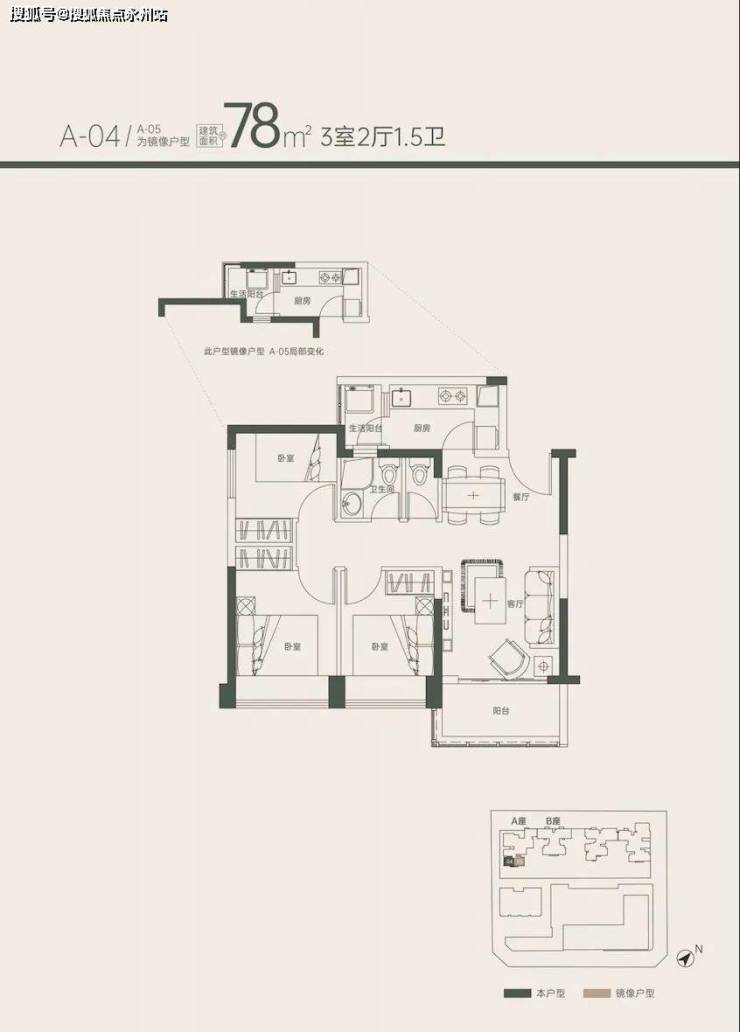 78㎡3房1卫 (户型04.05)58套