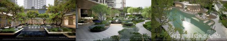 沉浸式森系园林:中央水院倒映天光云影,乌桕林随季节变幻色彩,全冠移植的乔木让绿意无需等待