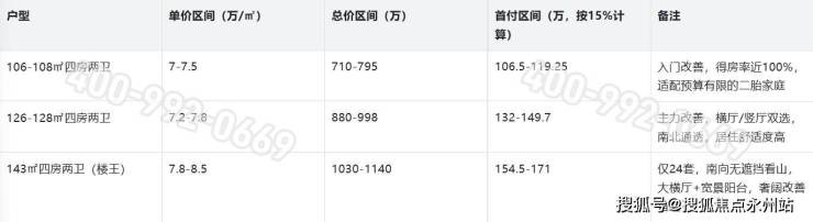 总价区间:结合户型面积测算,各户型总价参考如下:106-108㎡户型约680-780万,126-128㎡户型约820-920万,143㎡户型约980-1100万,其中143㎡楼王户型仅24套,南向无遮挡看山,单价预计8万元/㎡以上。