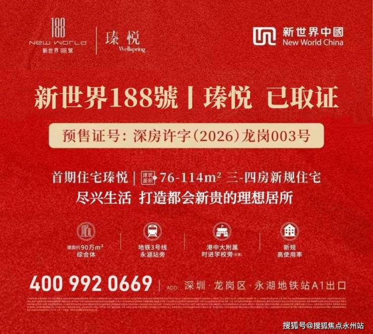 新世界188号·瑧悦,作为港企新世界在深圳的首个大型城市更新项目,以90万㎡产城融合综合体规模【地铁口+高拓户型+港企品质+低总价】四大核心优势,成为2026年深圳龙岗楼市的热门新盘。