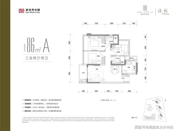 86㎡三房两厅两卫(改善入门,舒适升级)