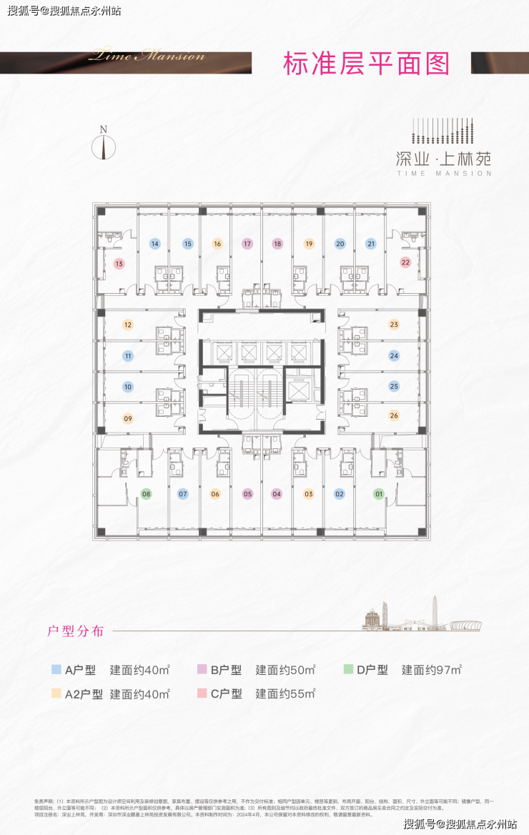 产品形态:主推40-97㎡精装商务公寓,主力户型为40-50㎡小户型(占比80%),另有少量20-36层改善型套房,涵盖1-3房全生命周期需求。