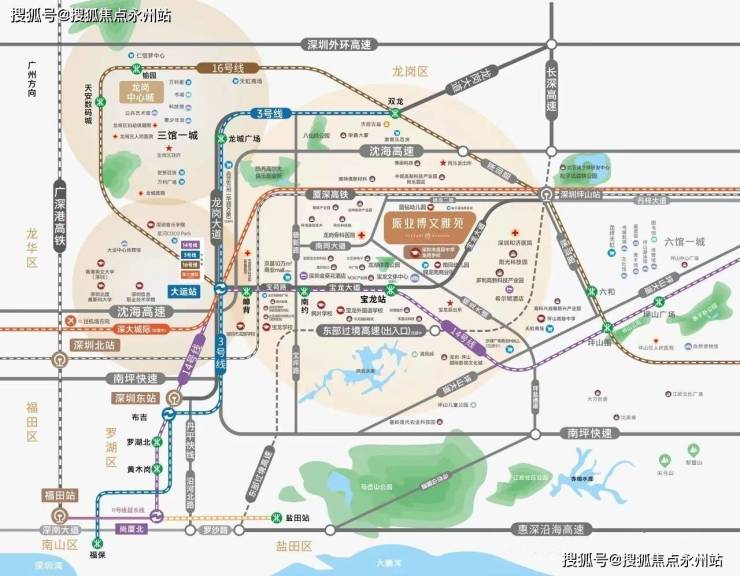 项目紧挨着深圳高级中学龙岗学校,北侧是金众蓝钻,周边有占地25万㎡的龙湖公园,龙岗骨科医院,14号地铁线“宝龙站”距离约1.9公里,还有东部过境高速即将开通。