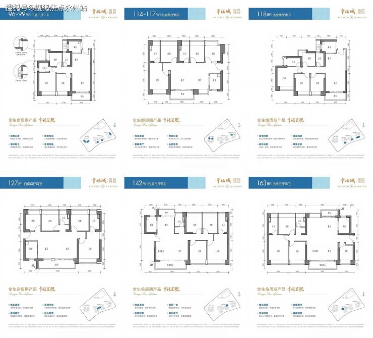114-117平4房两厅两卫 横厅设计,南北通透,6.3米宽客餐厅,8飘窗设计,得房率84.8%87.1% 二胎家庭、改善需求。