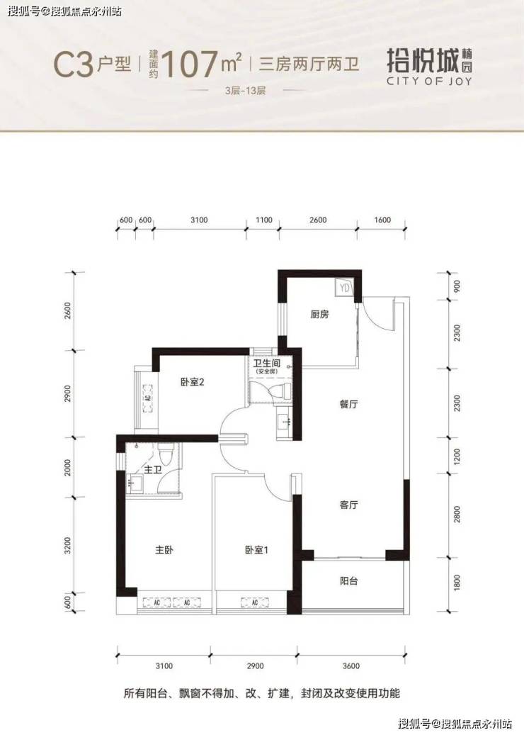 107㎡三房两卫,套内面积82.59㎡,得房率77.19%左右。