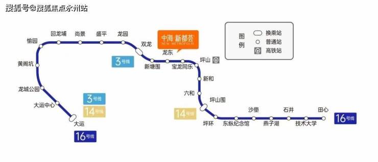 项目家门口就是16号地铁线“龙东站”,该线路是起自坪山田心,开往龙岗大运枢纽的普线,2站可到坪山高铁站,11站到大运站可换乘3/14号线。