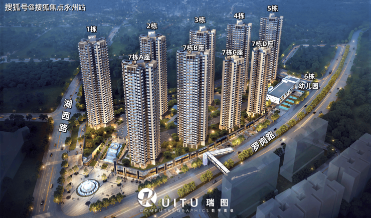 项目总占地面积约3.38万㎡,总建筑面积约18.14万㎡,计容总建筑面积约14.25万㎡,容积率4,绿化率30%,共由9栋27-33层高的住宅组成,其中7C座/D座住宅27F,2梯4户设计,其它栋数都是总高33层,2梯6户设计,6栋配建1所12班制幼儿园。