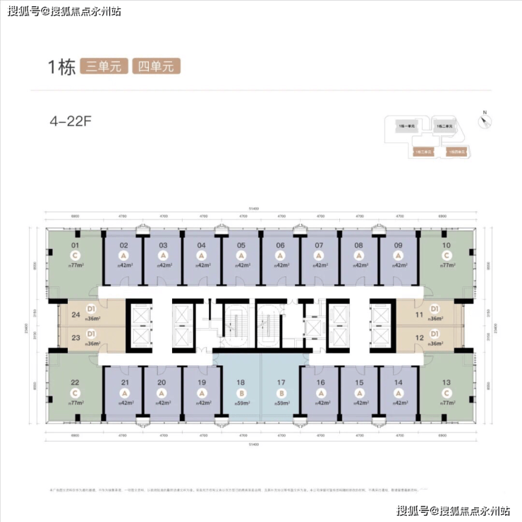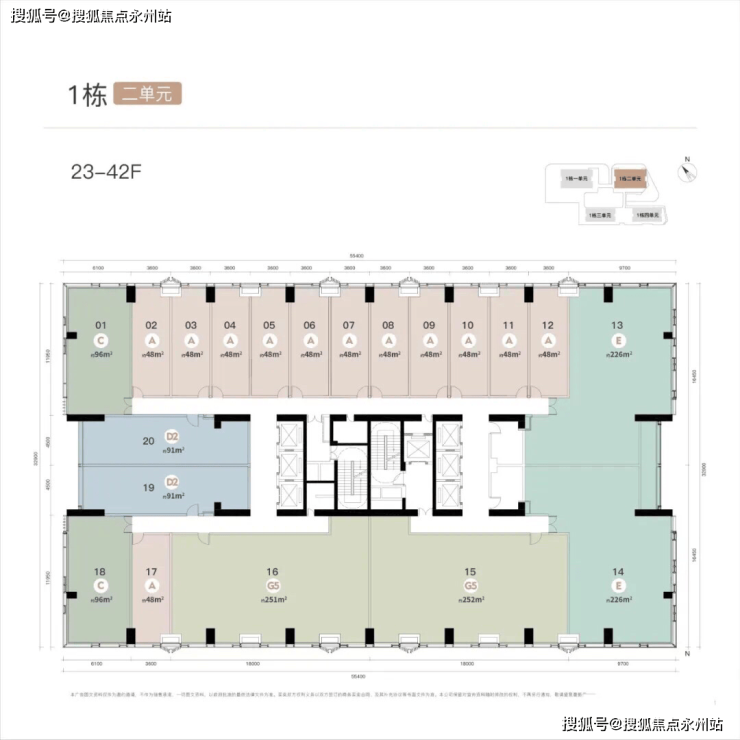 梯户比:公寓5梯24户 商办6梯20户 建筑类型:公寓商办