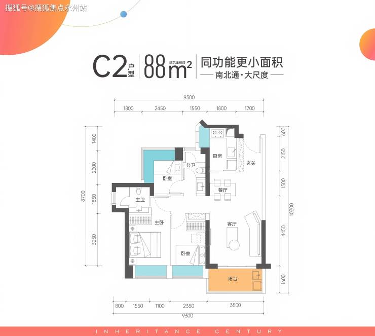 建面约 88㎡3房2厅2卫(新增户型)