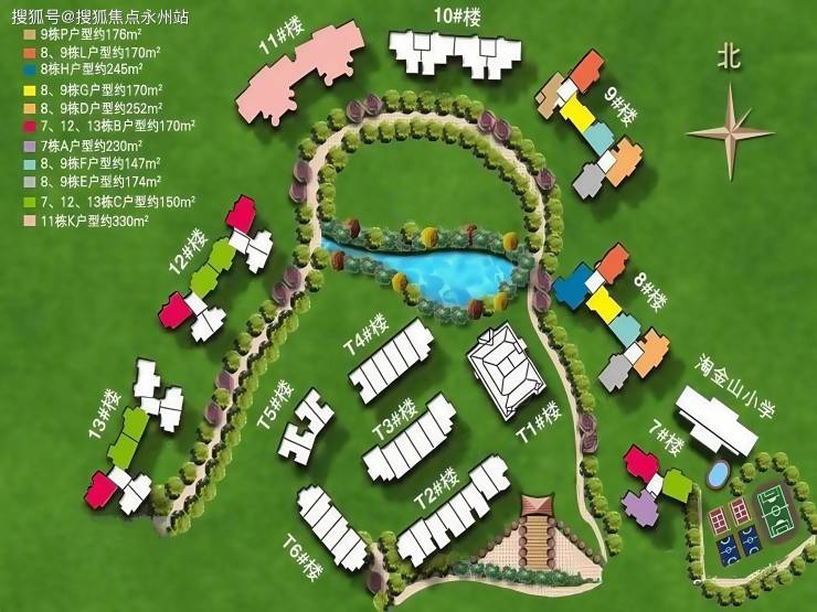 弧形半围合布局:建筑依山势逐级抬升,形成 “藏风聚气” 的风水格局。高层楼栋呈弧形排布,避免对视的同时最大化山景湖景视野,例如 170㎡户型主卧及客厅均直面东湖水库。