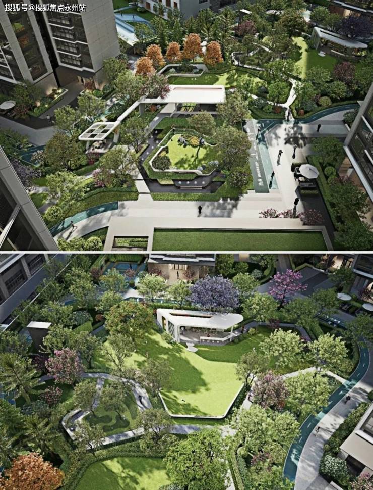 约1.3万㎡中央森系园林:片区内最大的社区园林,精制“四大隐奢空间”、“三大能量场域”,搭配森系儿童乐园、四季隐形轻氧跑道等,以顶奢酒店园林设计为理念,打造当代年轻人的城市微度假生活。