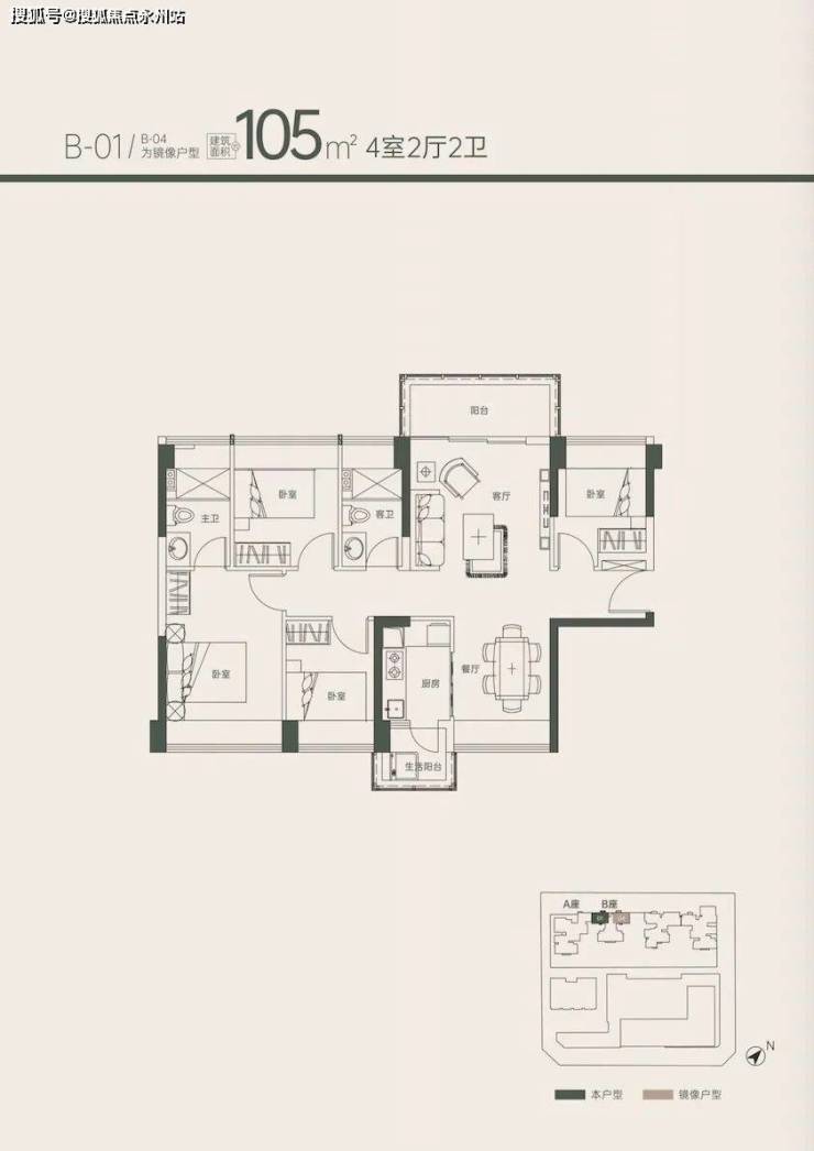 105㎡4房2卫 (户型01.04)58套
