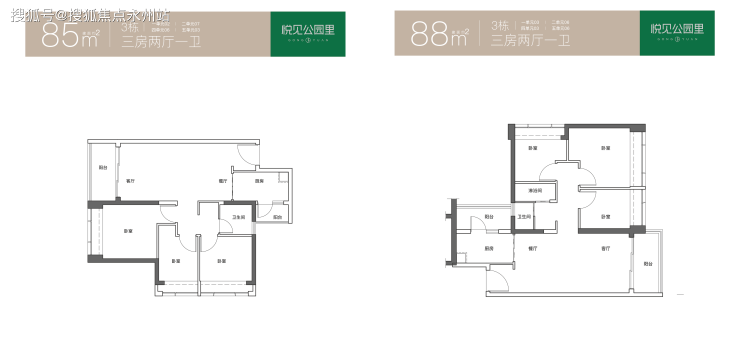 85㎡的3房2厅1卫,折后总价297-319万/套,单价3.49-3.75万/㎡