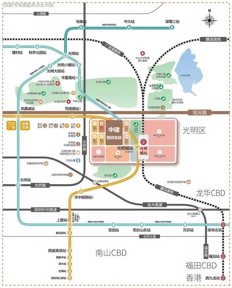 中建观玥名邸所在的光明凤凰城板块,凭借光明科学城的战略定位、交通枢纽的升级、优质教育资源的集聚、商业医疗配套的完善及生态居住品质的提升,已成为深圳西北部最具发展潜力的区域之一。