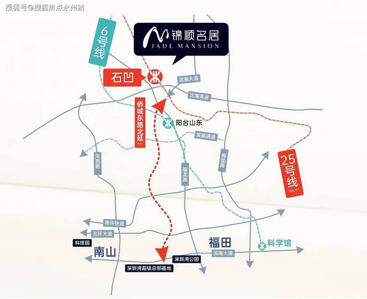 项目临近地铁6号线阳台山东站(需公交接驳),规划中的地铁25号线石凹站(2027年通车)位于项目附近,建成后可快速直达龙华中心区、坂田华为区域。