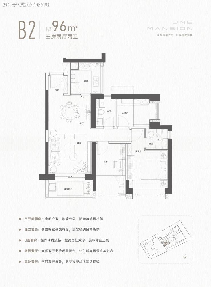 【B2户型3房2厅2卫 】96m²