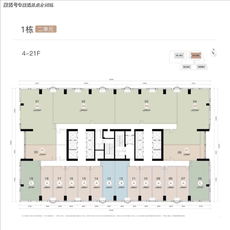 梯户比:公寓5梯24户 商办6梯20户 建筑类型:公寓商办