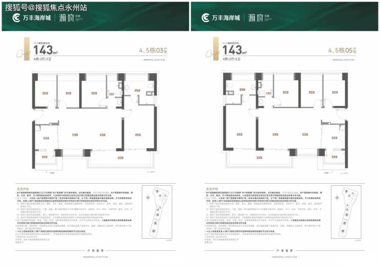 建面约189㎡02/03户型分别在左右两端头,双套房、南北通透设计,也是A区万丰海岸城唯一的超大户型产品。