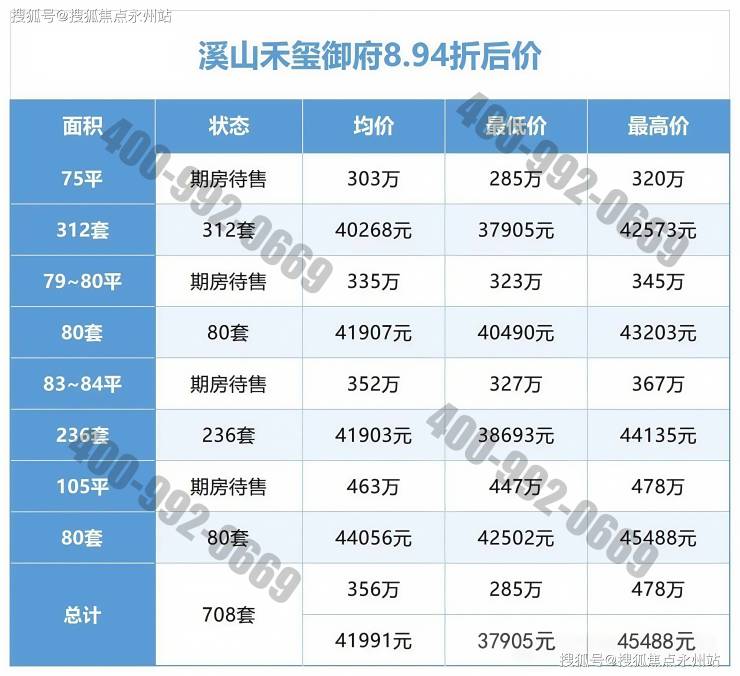 项目备案均价4.62 万 /㎡,备案单价4.24-5.09万 /㎡,总价319-535万/套,折后均价约4.13万/㎡,折后单价3.79-4.54万/㎡,总价286-478万/套。