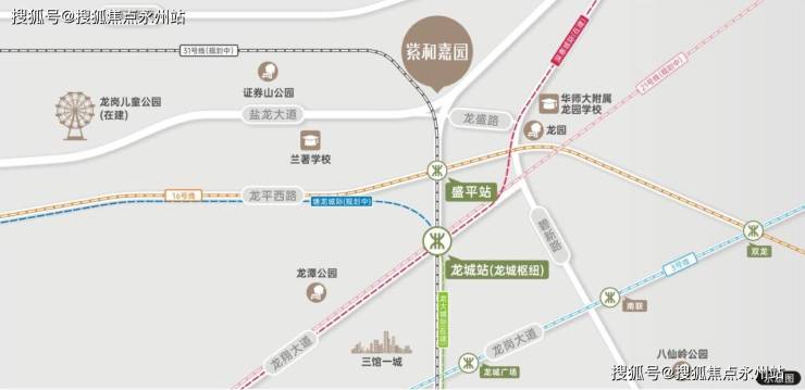 项目近邻16号线盛平站,同时周边还规划了地铁31号线:另外,在建的龙城枢纽站规划为地铁21号线。深惠城际线、塘龙城际线、地铁31号线四线交汇,届时项目可于此快速换乘通达全城。