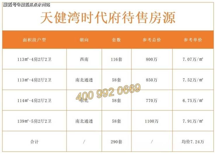 南山赤湾,天健湾时代府,本次将推出1栋1/2单元,面积有113-114㎡的4房2卫,139㎡的5房2卫户型,共290套房源,初步预估均价7.24万/m²,单价7.01-8.27万/m²,4房总价750万起,5房总价1100万左右,期房带精装交房,具体还是得以开盘价格为准,此价格仅作参考。