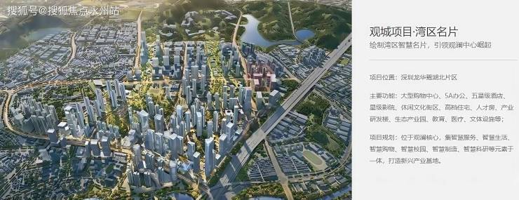 项目由深圳市嘉创投资有限公司(鸿荣源集团)开发,产权年限70年(2023-2093年),属于龙华区观湖街道观城第一期城市更新单元,分2期打造(世纪花园、时尚花园),定位“公园+”主题大盘,整体规划住宅约9674套(含保障性住房2506户),是片区标杆性综合体项目。