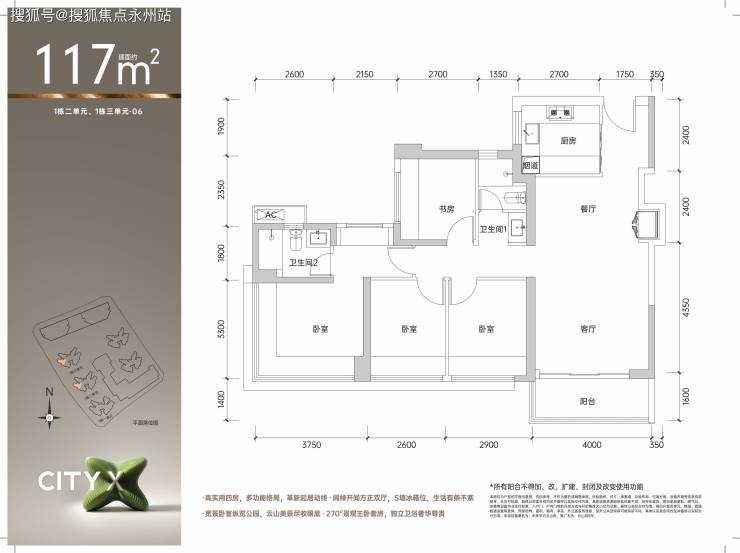 适合人群:追求舒适性的三口之家,东南/西南朝向户型性价比更高。