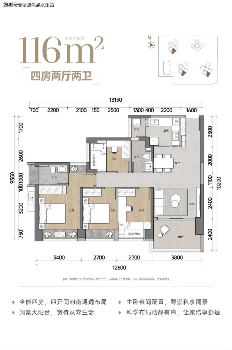 项目采用围合式塔楼布局,这种布局很是精妙,楼间距宽,视野好,每户的采光通风都不错,再加上市面上少有的4.16低容积率,户型上,科学布局全明空间,全景观飘窗;新加坡式社区园林,全龄段活动空间,让居住体验感氛围拉满。