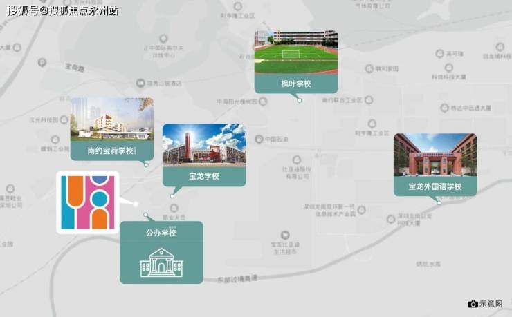 项目自带1所12班制的幼儿园,家门口规划有1所九年一贯制公办学校,根据龙岗区教育局2023年学区划分,小初学区划分在宝龙学校(300米)、宝荷学校(500米)、宝龙外国语学校(距离约4公里,有校车可以接送)。